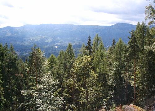 In Krummhübel-Brückenberg: Blick zur Schneekoppe (1602m)
